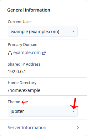 Farklı bir stile sahip başka bir cPanel temasına geçiş yapmak kolaydır.