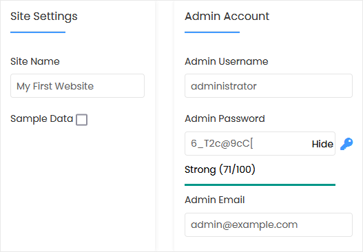 8. Under the Admin Account field, enter the following information: